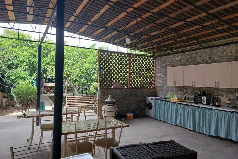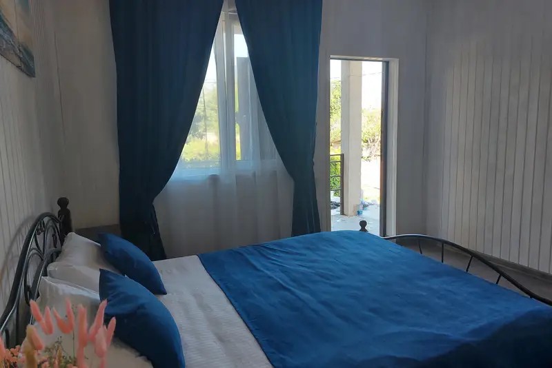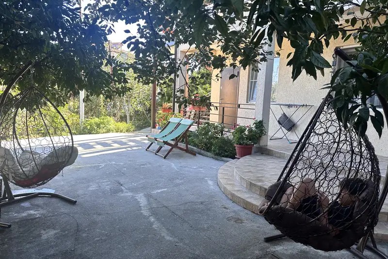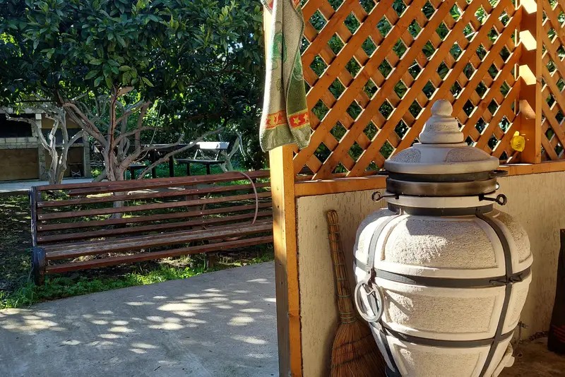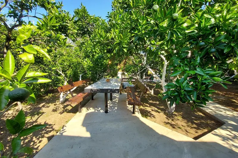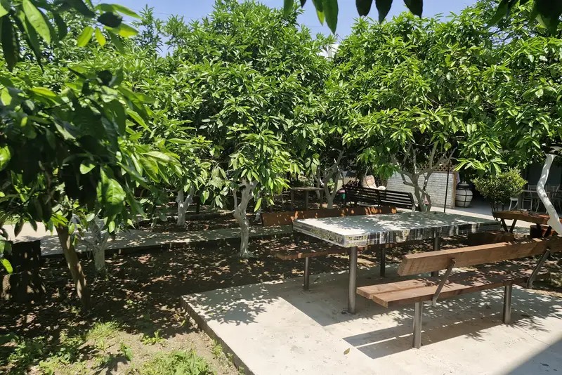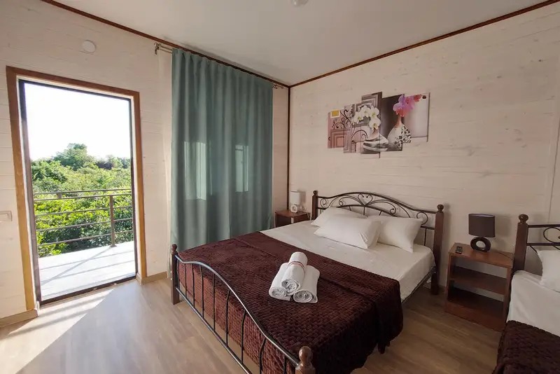 В гостевом доме уютные номера, отделанные деревом, и огромный мандариновый сад на территории.
