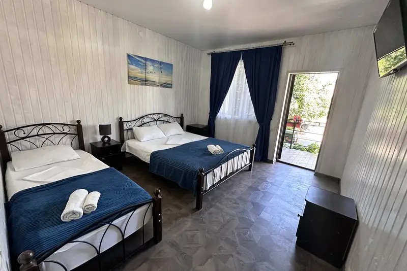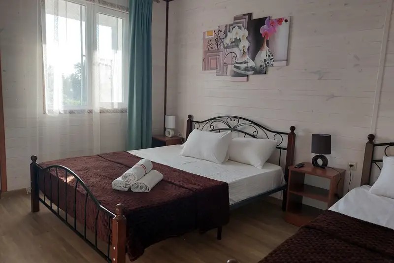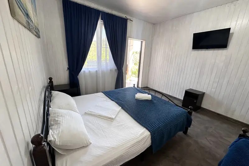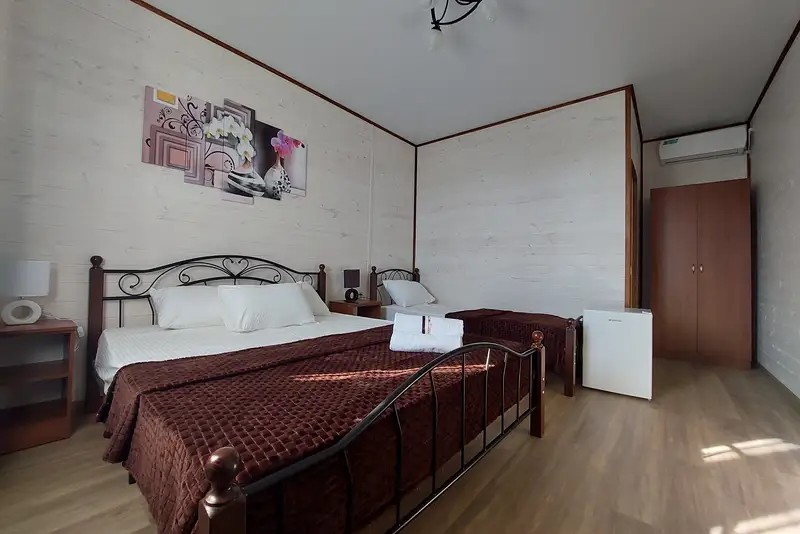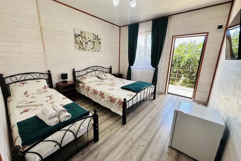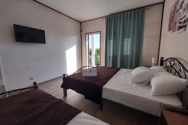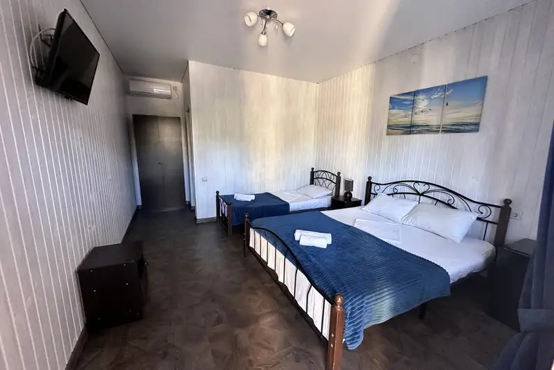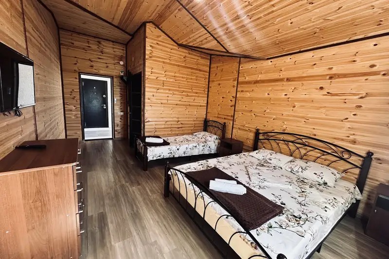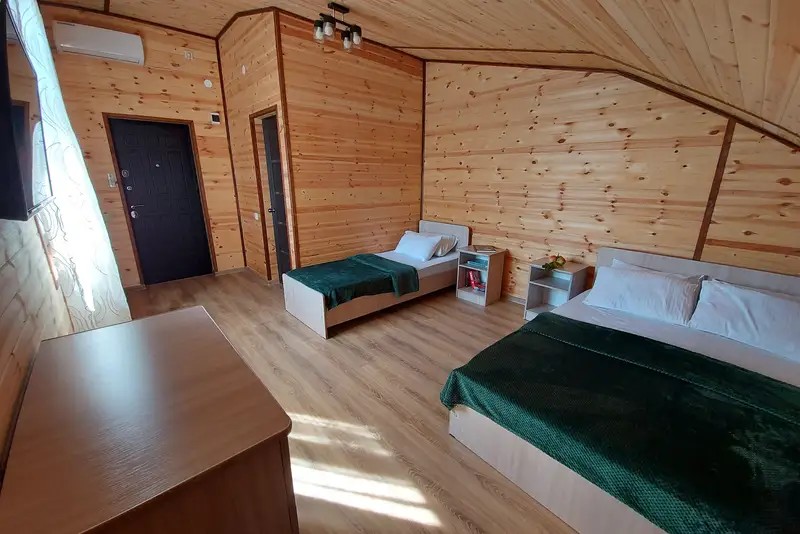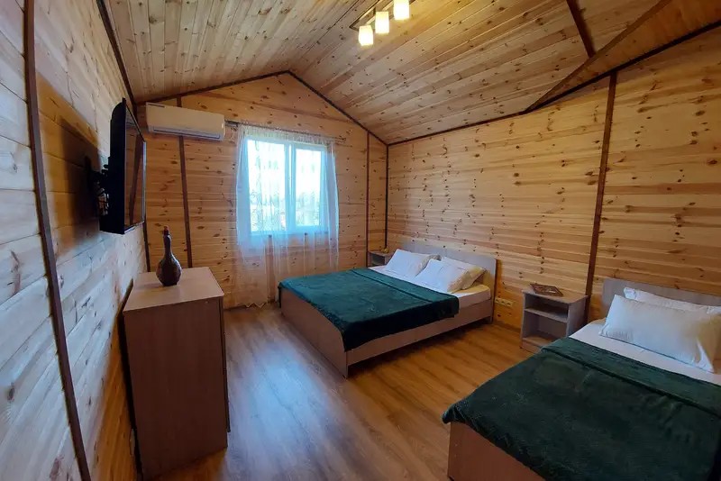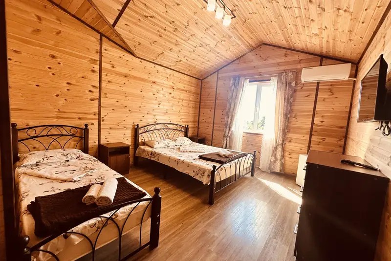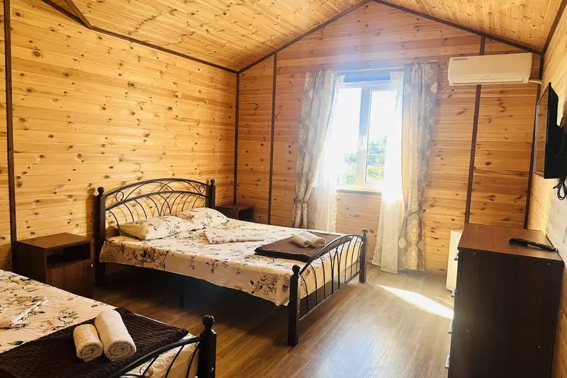 2-х местные : кондиционер, холодильник, телевизор, шкаф, Wi-Fi, бойлер для горячей воды, собственный санузел и душевая, шкаф, спальные мест3-х местные: кондиционер, холодильник, телевизор, шкаф, Wi-Fi, бойлер для горячей воды, собственный санузел и душевая, шкаф, спальные места. С возможностью поставить доп место.