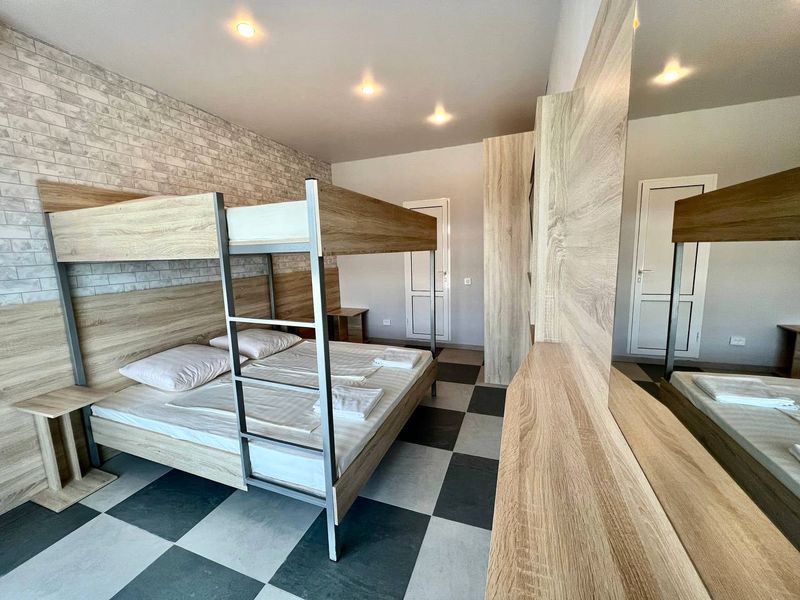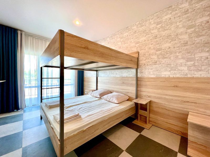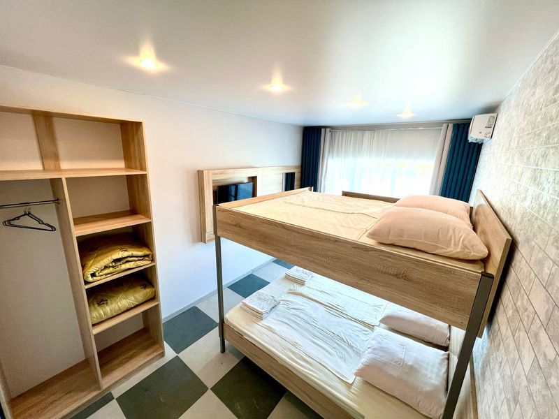 ( двухъярусная двуспальная кровать) , общий балкон