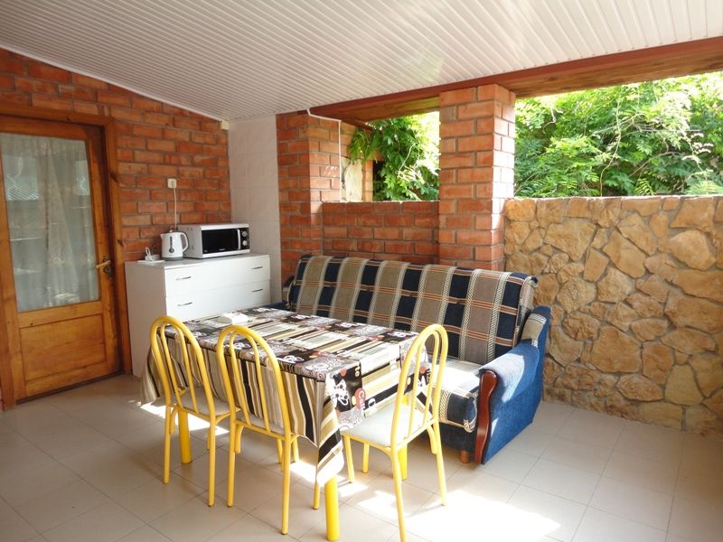 Гостевой дом имеет озеленённую дворовую территорию, которая оборудована столиками для отдыха, есть бассейн 8х4м, мангал для приготовления шашлыка, теннисный стол. Во дворе имеются бесплатные парковочные места для автомобилей.