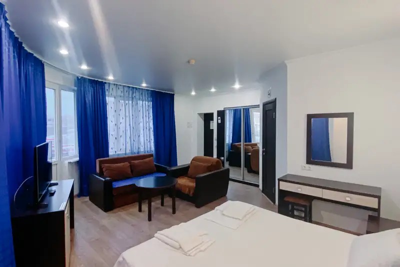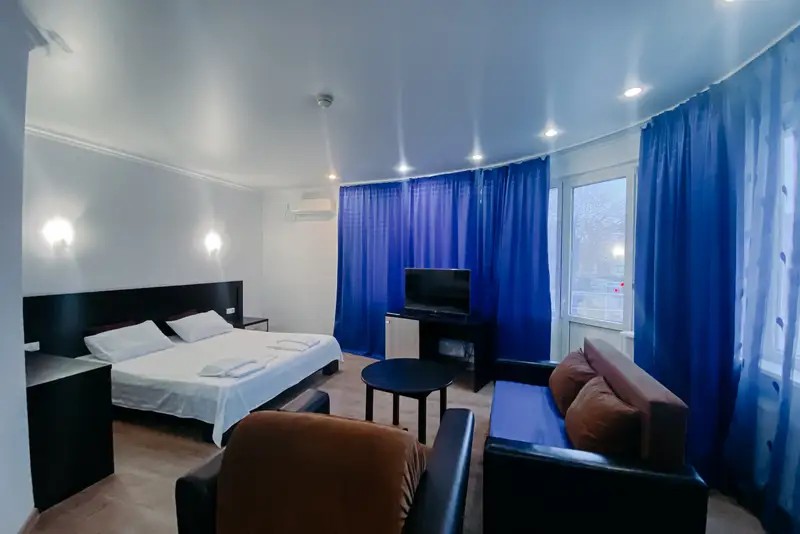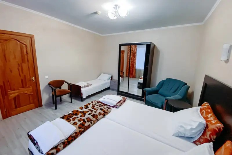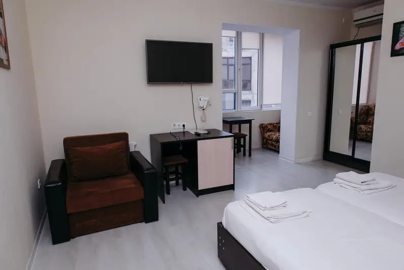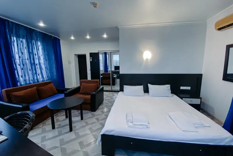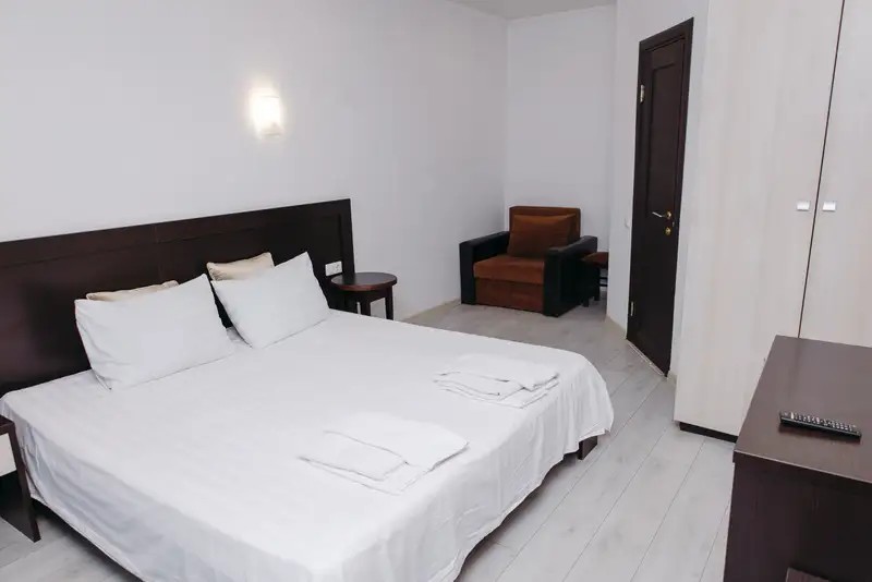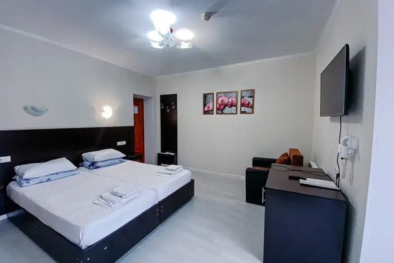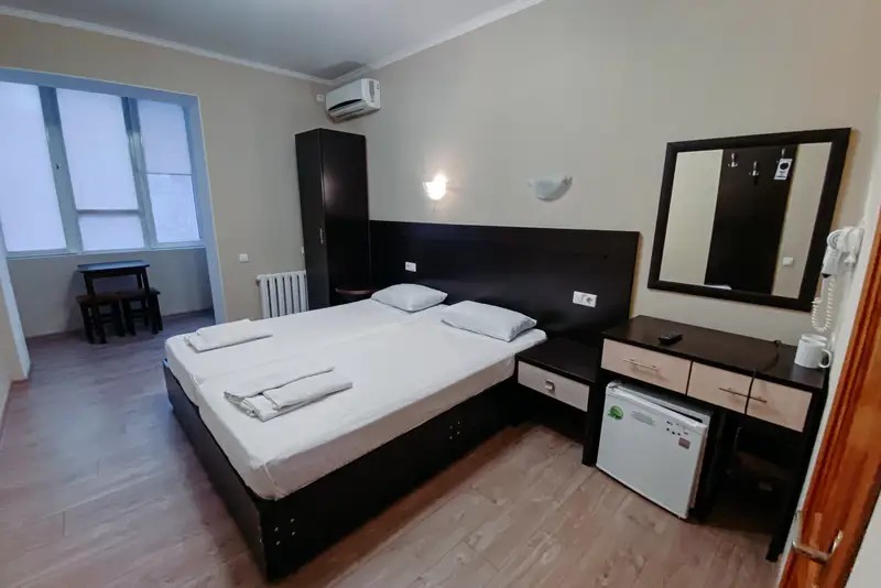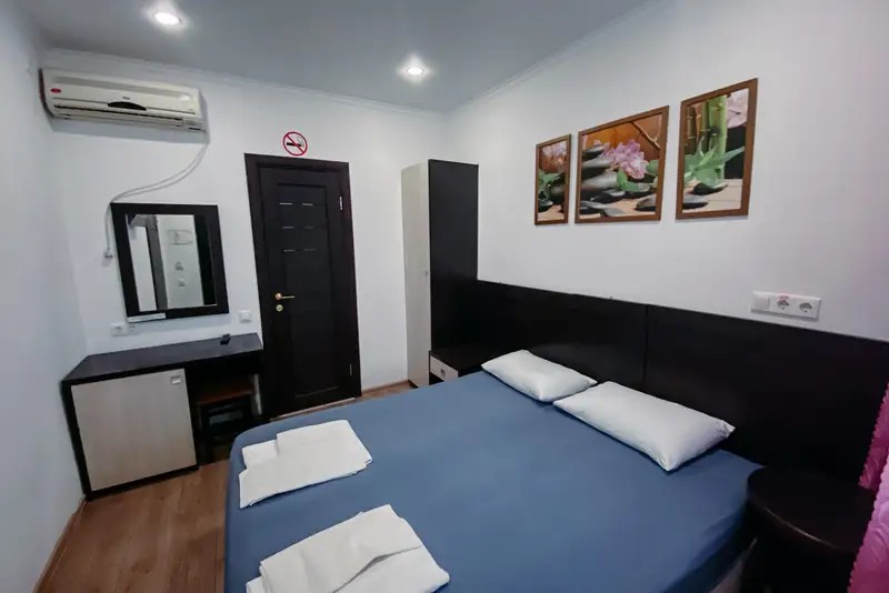 Мы предоставляем комфортабельные номера, обставленные удобной мебелью и украшенные приятным текстилем. К вашему выбору предлагаются номера различных категорий. Номера укомплектованы всем необходимым — телевизор, кондиционер, холодильник, санузел, гладильная доска и утюг, фен, сейф. Гостям предоставляется постельное белье, полотенца, шампунь, мыло. Имеется общая кухня со всем необходимым для приготовления пищи. На всей территории отеля действует бесплатный Wi-Fi.