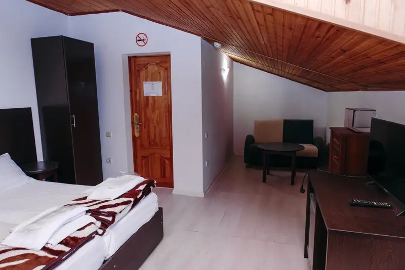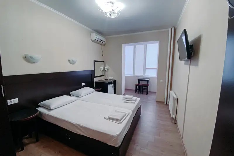Стандартный двухместный номер для комфортного отдыха с возможностью размещения ещё одного гостя на дополнительном месте. Небольшая и уютная комната создаёт тёплую домашнюю обстановку.