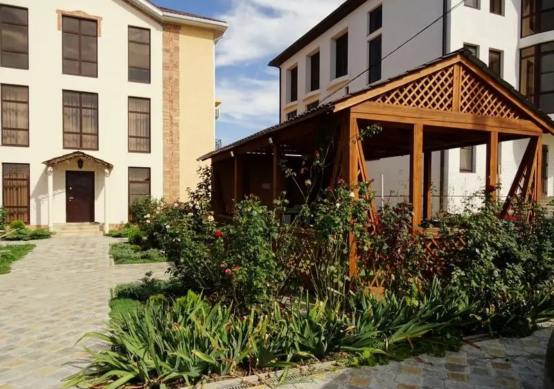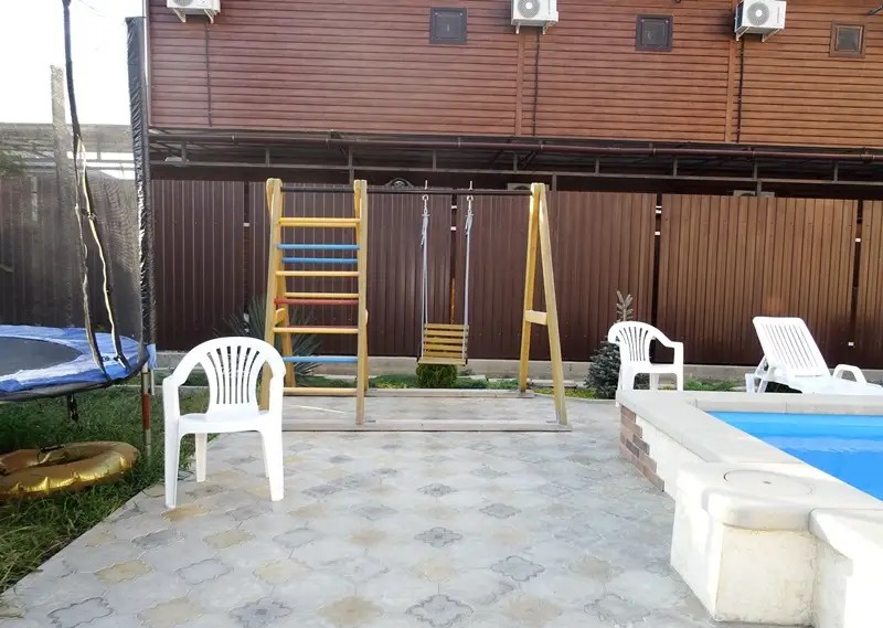 Во дворе гостевого дома "Лучана" имеется детская игровая площадка, большой благоустроенный двор с беседкой, летней кухней. Бассейн с теплой и чистой водой радует своих гостей.
