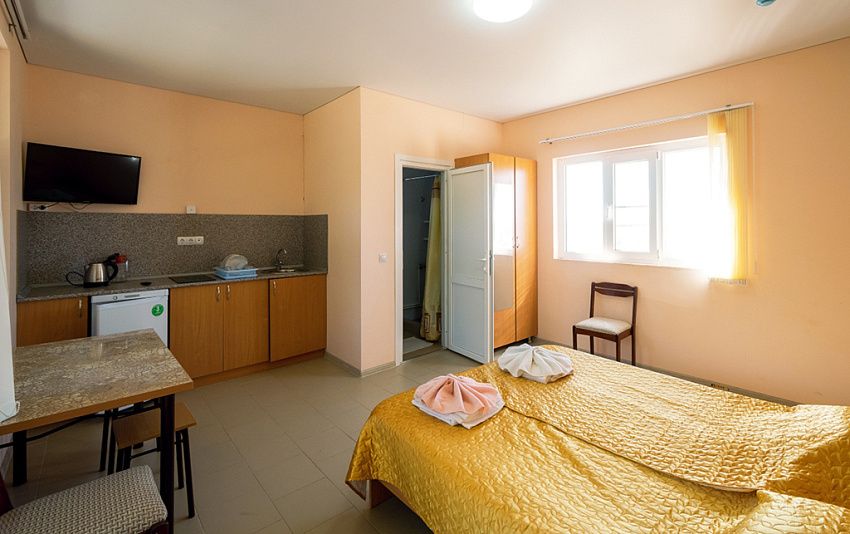 3-х местные номера: телевизор, холодильник, двухспальная кровать, сплит-система, душ, санузел, кухня. С видом на море |