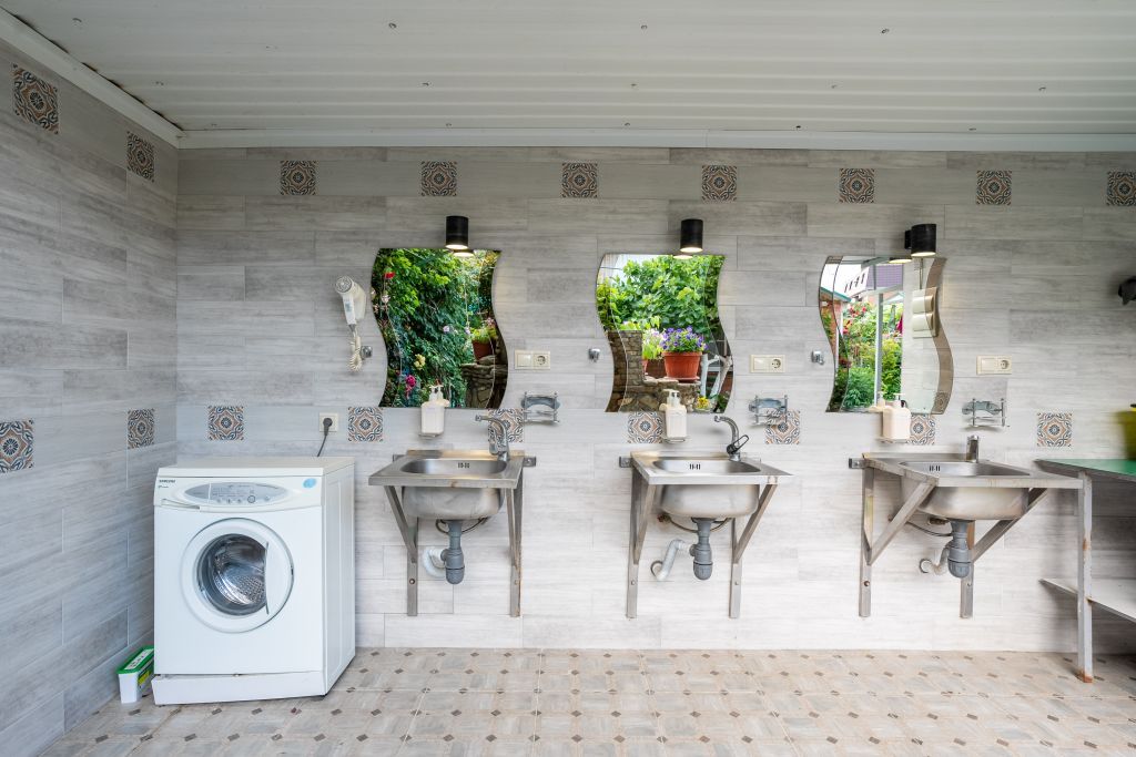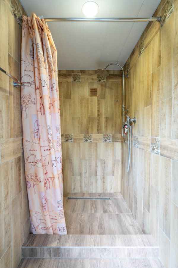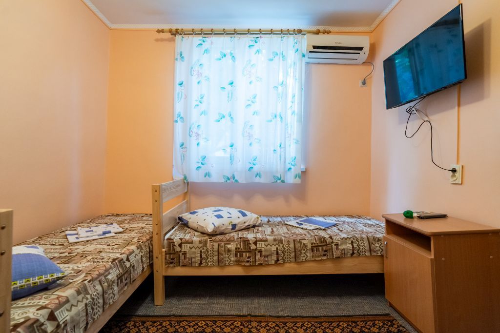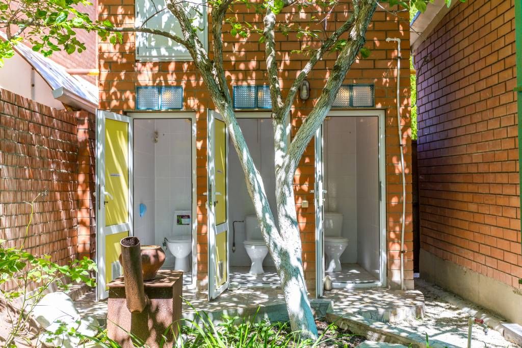 Душевые и туалеты на улице в отдельном помещении. Холодильник один на 2 номера. Кухня на улице большая. Стиральная машина есть. В каждом номере есть кондиционер.
