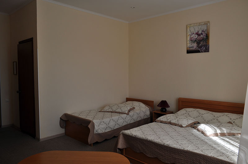 3-хместный без балкона, площадь номера 25 м2, С/у, ванная комната Кондиционер Телевизор Холодильник Шкаф для вещей Журнальный стол кровать, односпальная кровать, раскладное кресло кровать