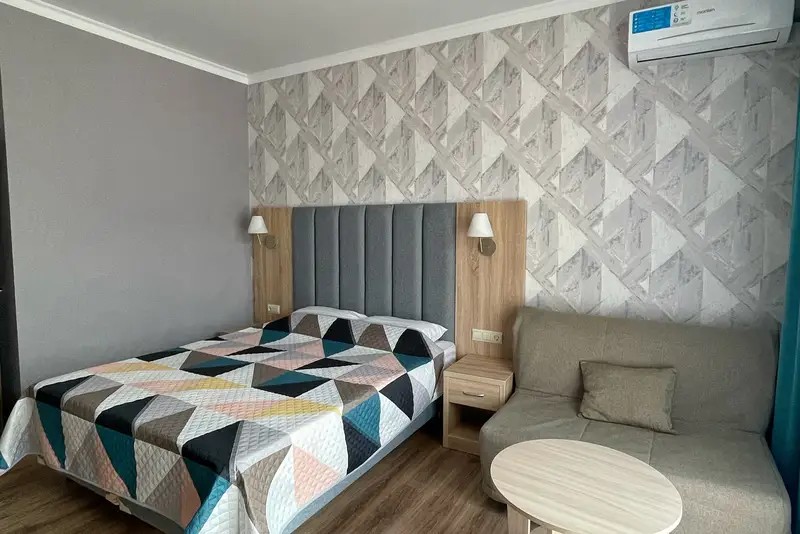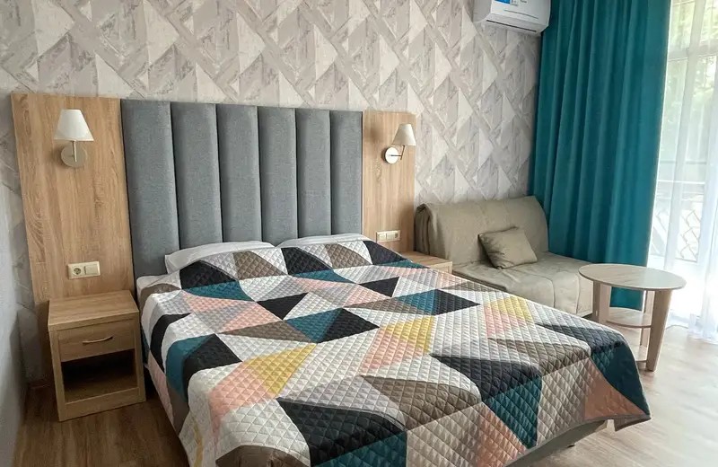25 м2, 1 комната. Душ и туалет в номере. Холодильник. Телевизор. Балкон. Кондиционер.