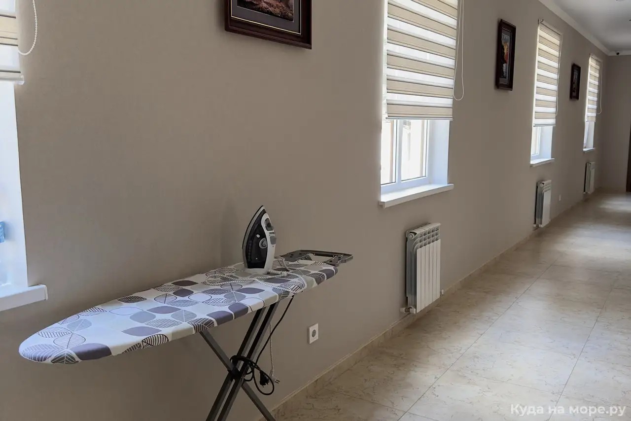 Большой просторный номер с большим индивидуальным балконом, возможно 4 раздельных спальных места. В номере кровати, тумбочки, шкаф, вешалка, чемоданница, стол, стул. На балконе столик, кресла и сушилка для белья.