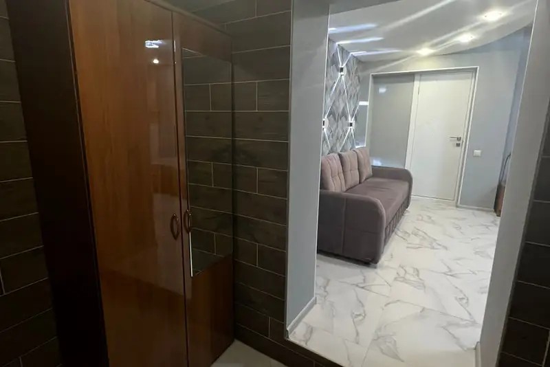 В холле находится общая кухня, предназначенная для 4-х номеров со всеми удобствами, оборудованная кухонной стенкой, посудой, микроволновой печью для самостоятельного приготовления пищи, обеденные столы и стулья, телевизор, сплит-система.