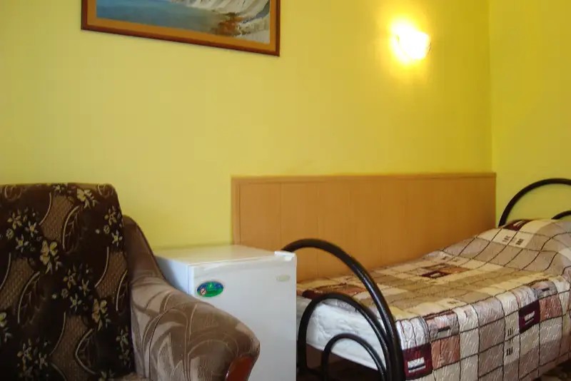 Коттедж 1 этаж. Номера «Эконом» на 2-4 человека находятся в отдельно стоящем коттедже. Коттедж одноэтажный с открытой террасой. В нем 4 номера по три человека без дополнительных мест.