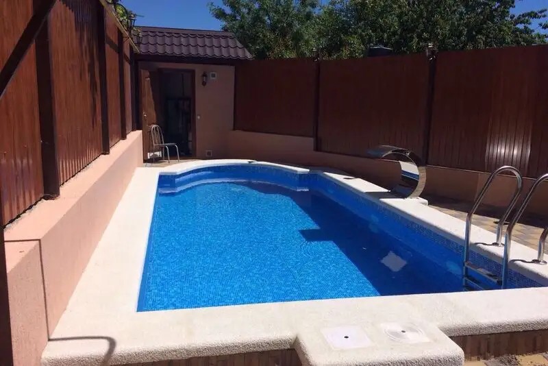 Во дворе есть зона отдыха с бассейном, которая включает в себя сам бассейн с подогревом, площадью 26 кв. м (3,5×7,5 м) и площадку с шезлонгами для загара.