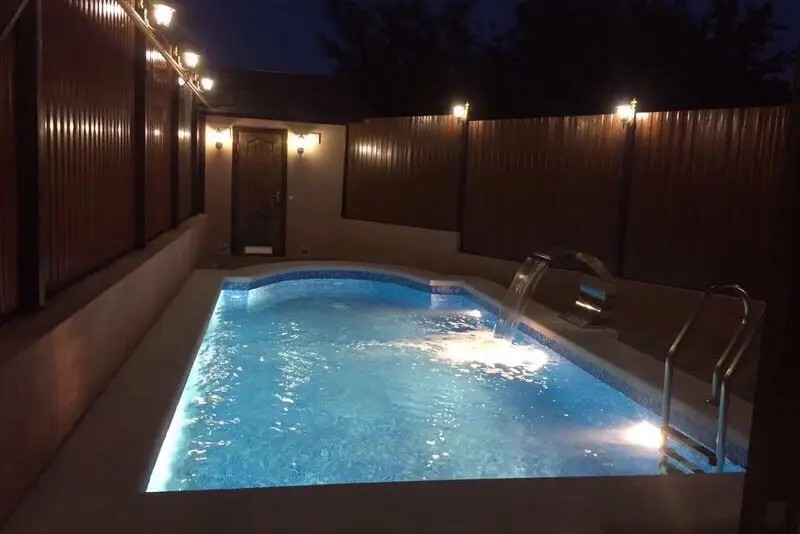 Ночью работает подсветка гостевого дома, бассейна и двора, что создает дополнительно уют и комфорт.