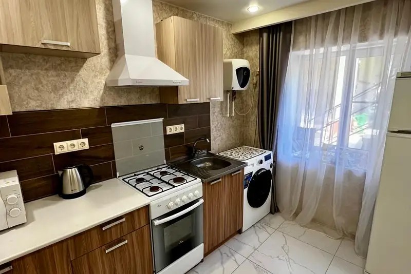 Номер люкс с кухней расположен на 1- ом этаже. Рассчитан на 4 человека плюс два дополнительных места за дополнительную оплату! Номер полностью укомплектован. Плюс WI-Fi, отдельный вход итд.