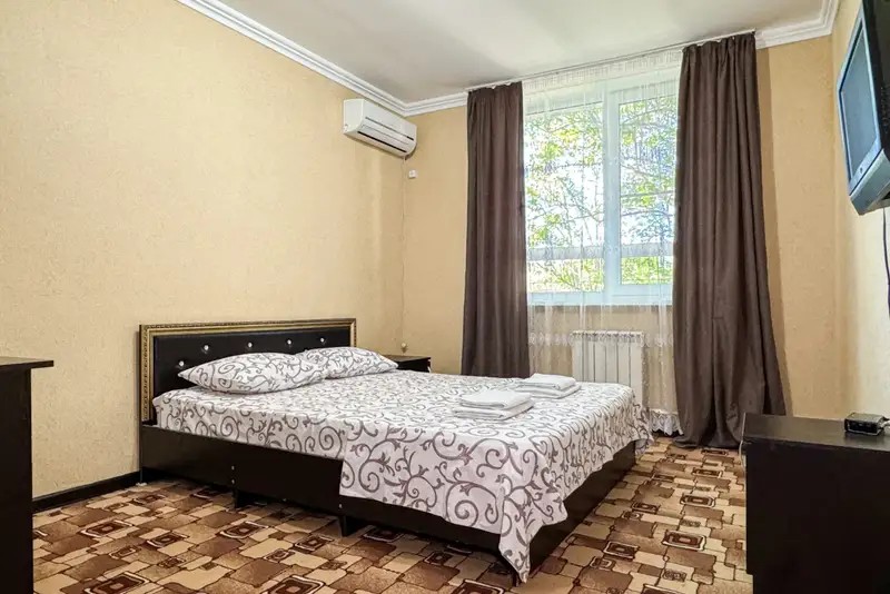 Гостиница «Пирамида» расположилась в курортном поселке Кабардинке. Предлагается качественный уровень обслуживания сочетающийся с удобным расположением. Гости, приехавшие на автомобиле, смогут оставить его на парковке у дома. На территории работает беспроводной интернет. Заселение вместе с домашними животными не допускается. Для размещения предлагаются комнаты вместимостью до пяти человек. В них имеются: удобные спальные места, где Вы сможете отдохнуть после длительного переезда, телевизор и система кондиционирования. Ванная оснащена стандартным набором сантехники. Для приготовления пищи есть общая кухня с необходимой техникой и кухонным инвентарем. Постояльцы могут воспользоваться услугой доставки еды. Также можно посетить кафе, столовые и рестораны, которые находятся в непосредственной близости. До пляжа 600 м.