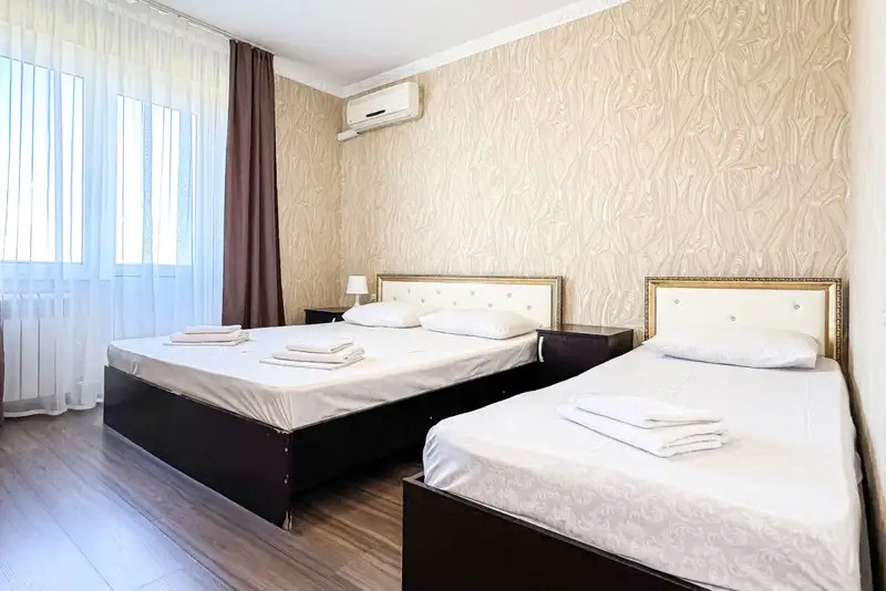 3-х местный 20м2 Односпальная кровать и двуспальная Кондиционер, Телевизор, Wi-Fi, Душ туалет Холодильник
