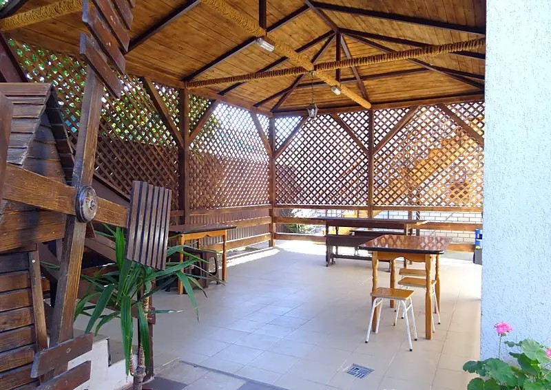 На территории бесплатная автостоянка на 10 авто, две беседки с мангалом, качели, Wi-Fi бесплатно. Организуем за дополнительную плату трансфер и поездки в горы.