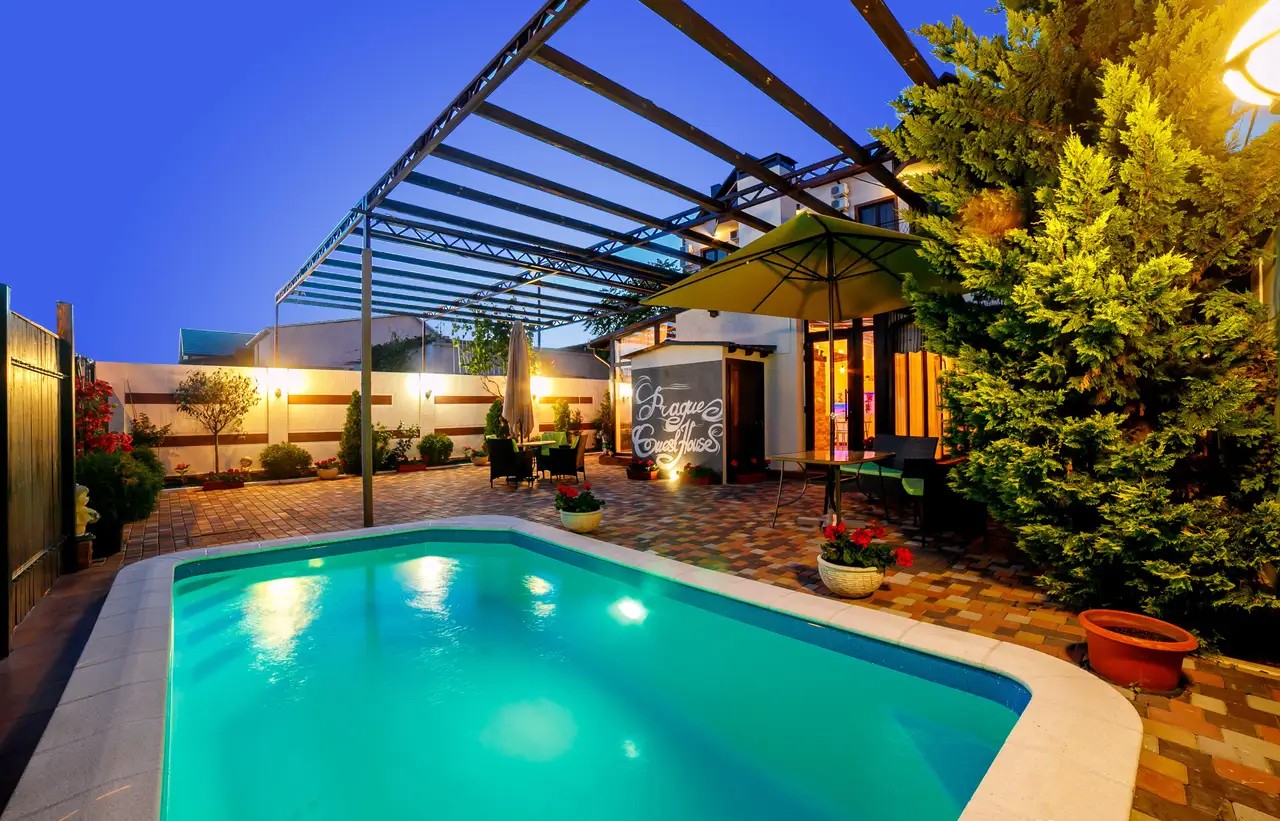 Для гостей есть открытый купальный бассейн с подогревом и подсветкой.