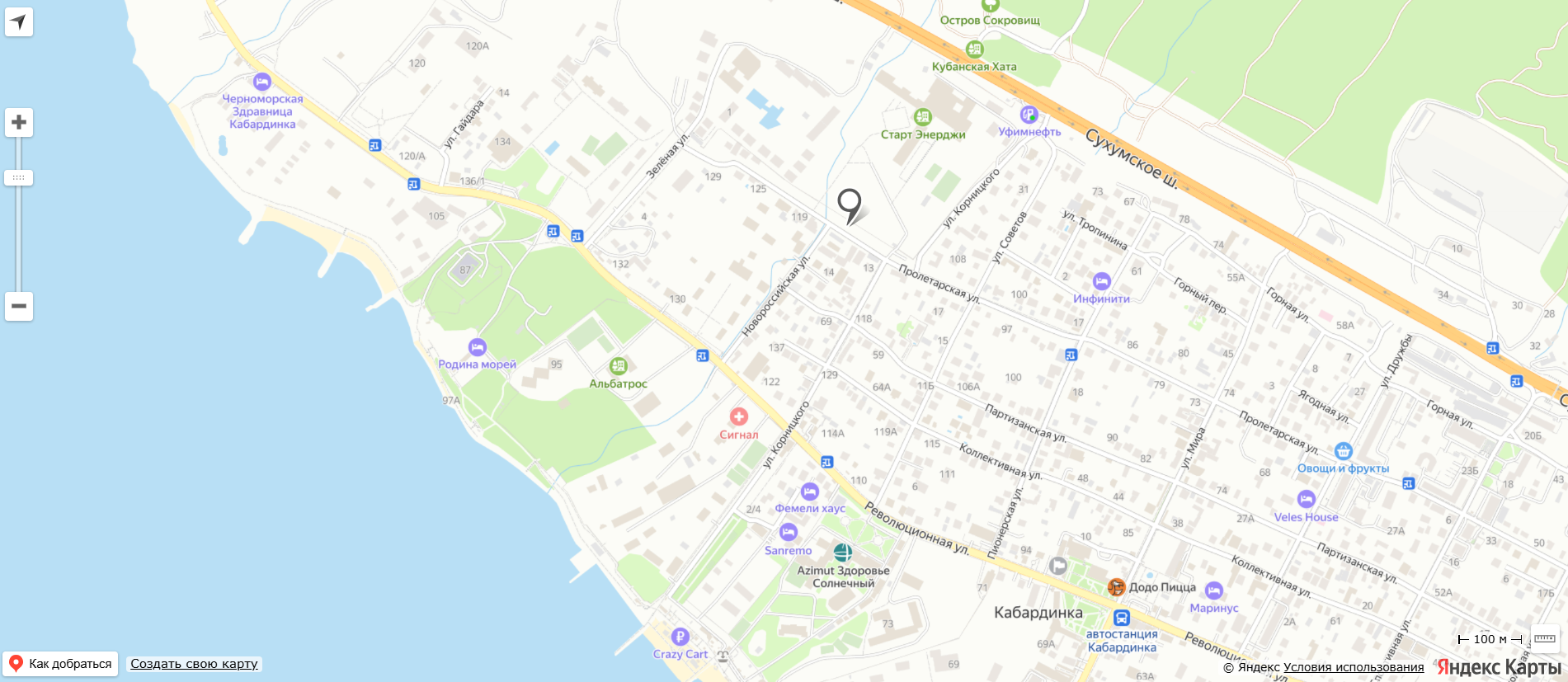 Гостевой дом "Корал SEA" (ул. Пролетарская ) расположен недалеко от набережной в курортном поселке Кабардинка. В шаговой доступности имеются продуктовые магазины, кафе, столовая. Ближе к центру вся развитая инфраструктура. До пляжа минут 10, до цента 15 минут.