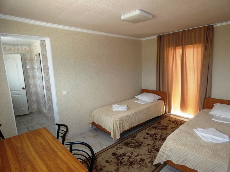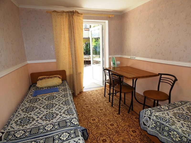 Расположен в центре г.Феодосия, в нескольких минутах ходьбы от Крымского рынка, магазинов, кафе. Условия размещения: 2-х местных номера, 3-х местных номера (удобства на 1-м этаже, дополнительно на территории). В каждом номере ТВ. Есть кухня со всем необходимым для приготовления пищи (газовая плита, холодильники, посуда).