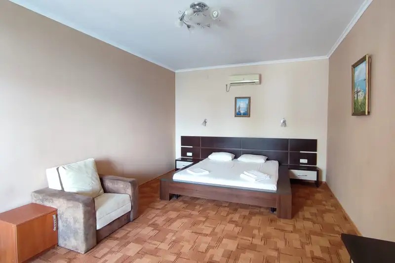 20 м2, 1 комната. Душ и туалет в номере. Холодильник. Телевизор. Балкон. Кондиционер.