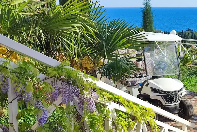 ✔️ Удобный бесплатный для гостей трансфер к морю и назад на гольфкаре