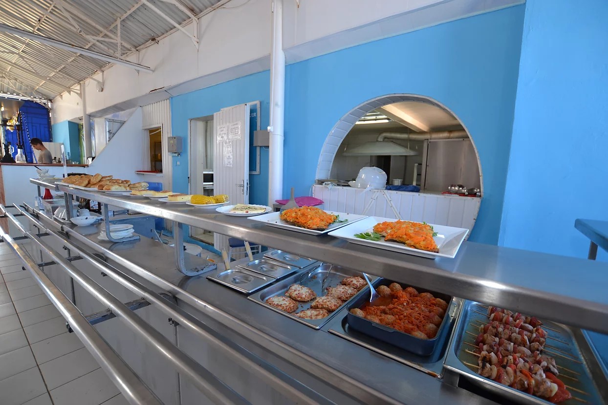 Кафе работает по системе линии раздачи. Вашему вниманию будут предложены большое количество первых и вторых блюд, холодных и горячих закусок с различными напитками.