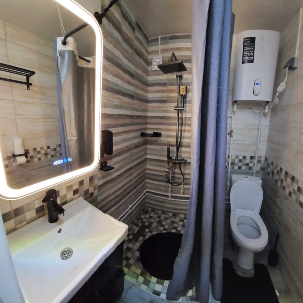 (1 комната, душ, туалет, ТВ, холодильник, сплит-система, чайник, балкон)