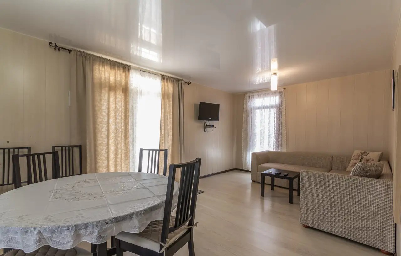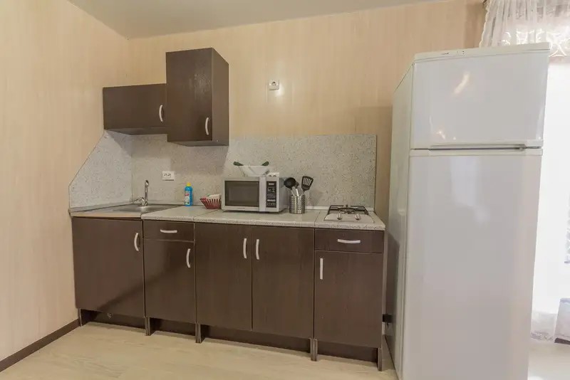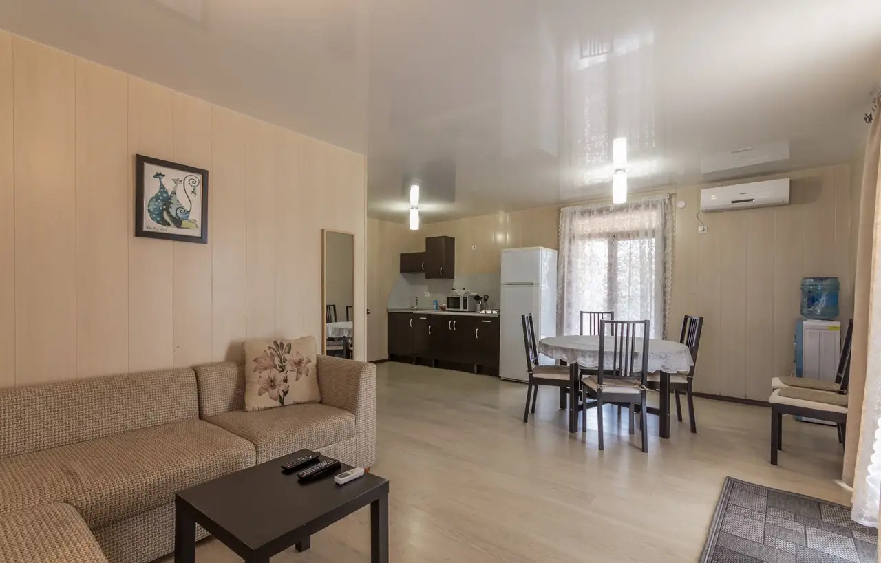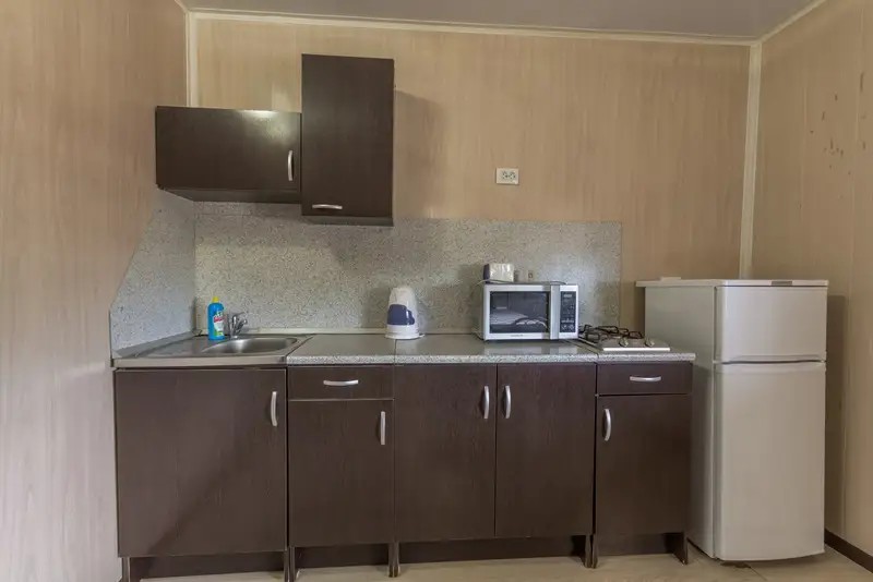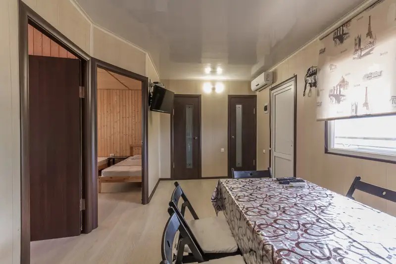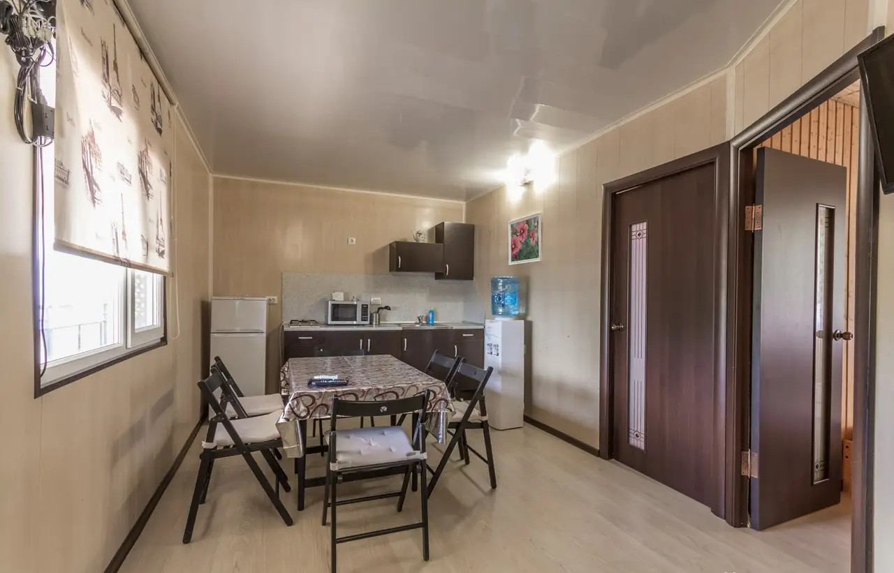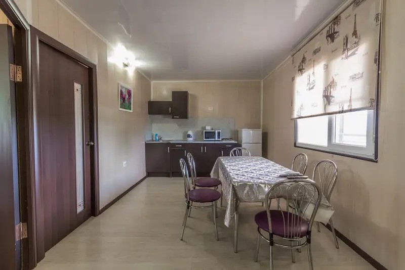 Номер 2 — двухкомнатный. В номере кухня-столовая оборудованная всей необходимой для приготовления пиши техникой и посудой. Санузел раздельный.