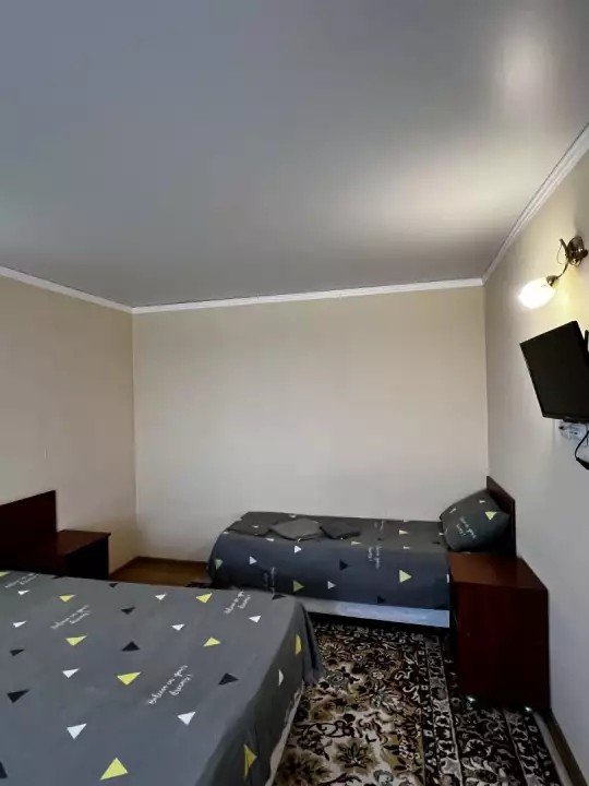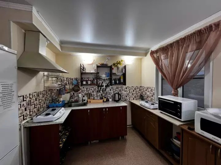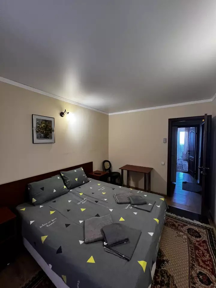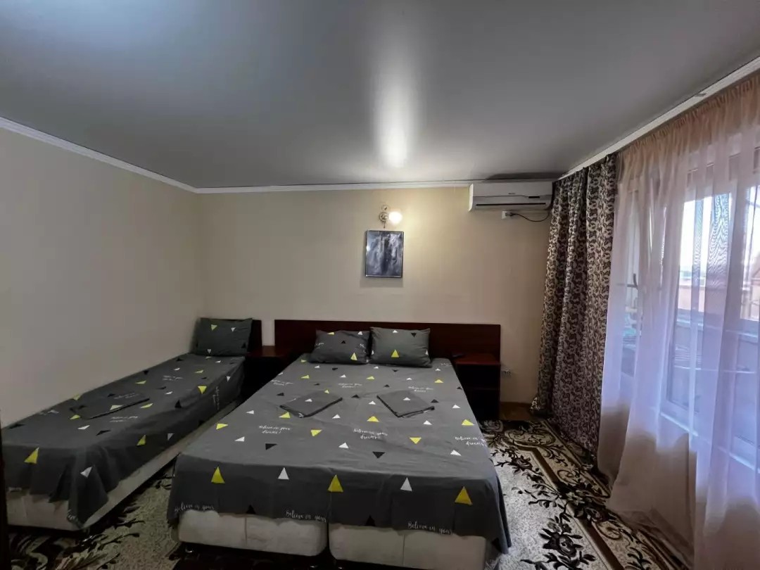 Трёхэтажное здание гостевого дома состоит из однокомнатных (двухместных) и двухкомнатных (четырёхместных, возможно использовать как трёхместные) благоустроенных номеров. В каждом номере: санузел с душем, новая мебель, цифровое телевидение, сплит-система, холодильник. Имеется общая кухня.