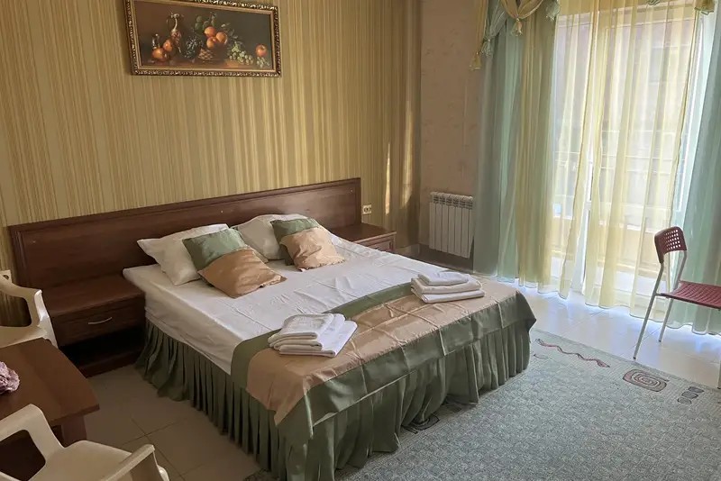 Удобства в номерах сделают ваше пребывание максимально комфортным. В каждом номере есть телевизор, холодильник, кондиционер, душ, туалет, Wi-Fi. В каждом номере есть балкон. У нас есть две сауны. Столовая, цены которой вас приятно удивят. Также на территории есть бассейн с подогревом. Бильярд. Для детей игровая комната.