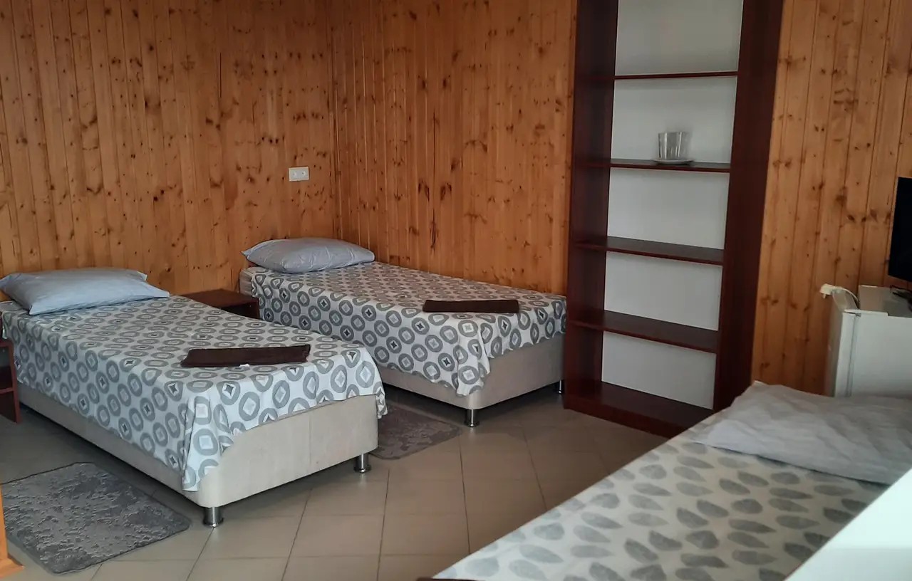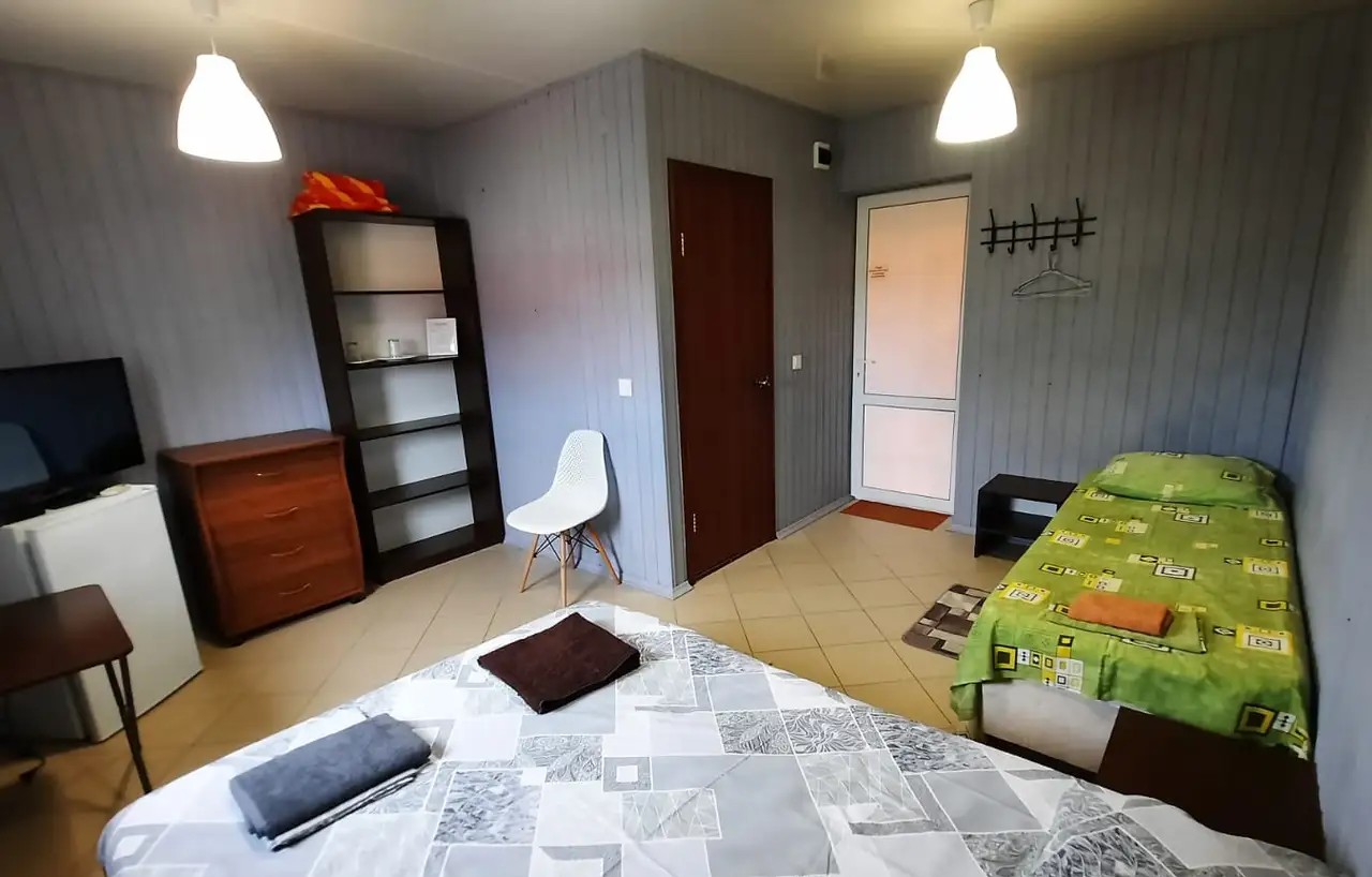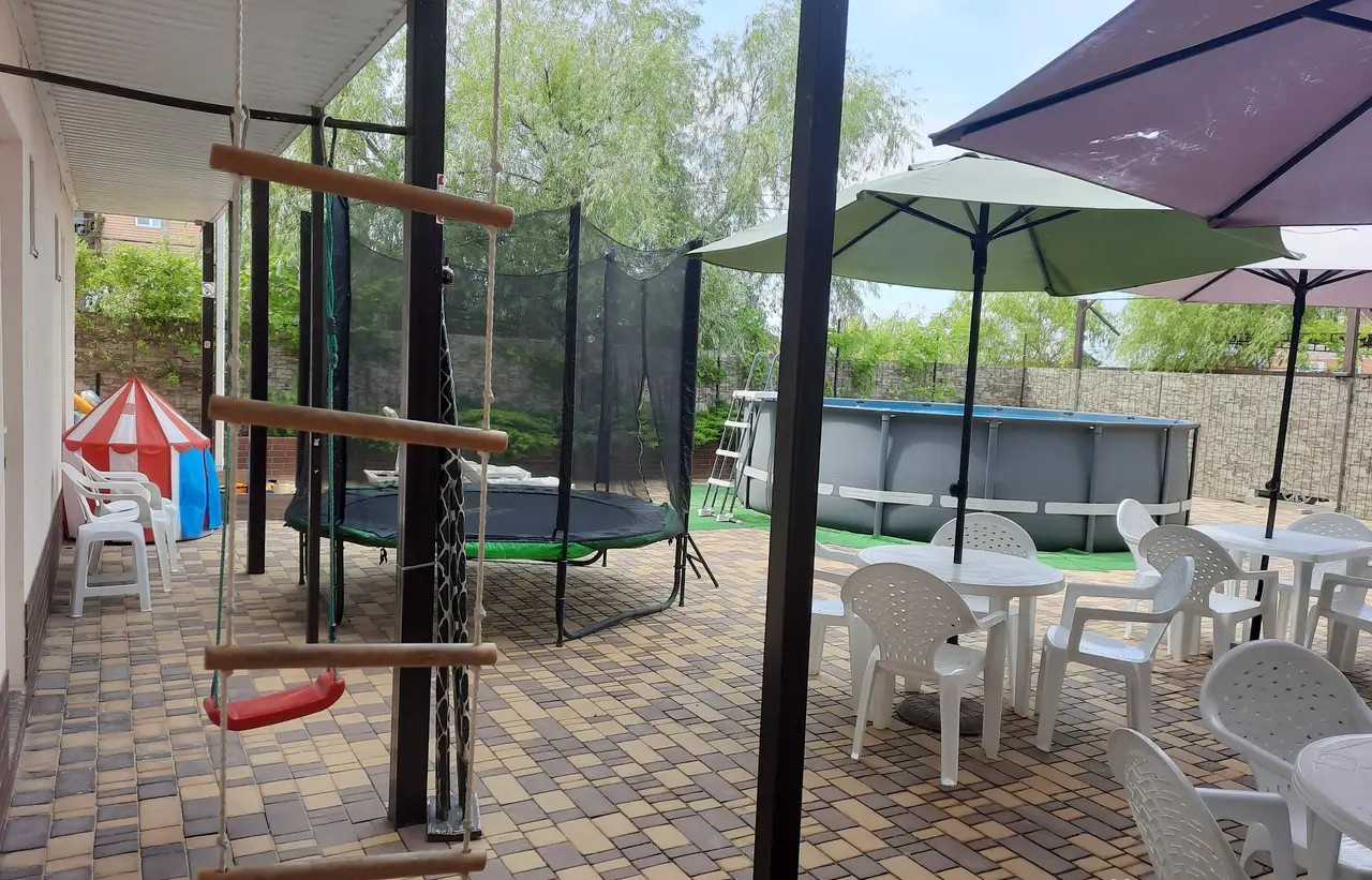 Помимо шестнадцати уютных современных номеров, рассчитанных на 3−4-местное заселение (с возможностью доукомплектования дополнительным спальным местом), в гостинице есть уютный закрытый двор со столиками, шезлонгами, детскими игрушками, теневой зоной, батут, бассейн. К услугам отдыхающих бесплатный WI-FI. В номерах кондиционер, холодильник, телевизор, душ, туалет. Установлена новейшая система безопасности, круглосуточное видеонаблюдение. Номера отделаны экологическими материалами из древесины, имеется сейф. Также на территория работает кафе «Домашняя еда) Комплекс на человека в день — 1000 руб. Выделено специальное место для курения. Отдыхающие в нашей гостинице бесплатно пользуются утюгом, гладильной доской, феном. В наличии детские кроватки. За дополнительную плату возможны пользование стиральной машиной-автоматом. До муниципального пляжа 400 м. В шаговой доступности дельфинарий, аквапарк, зоопарк, крокодиловая ферма, продовольственные магазины (круглосуточные). Озеро с вулканической лечебной грязью находится на расстоянии 20-минутной пешей прогулки.
