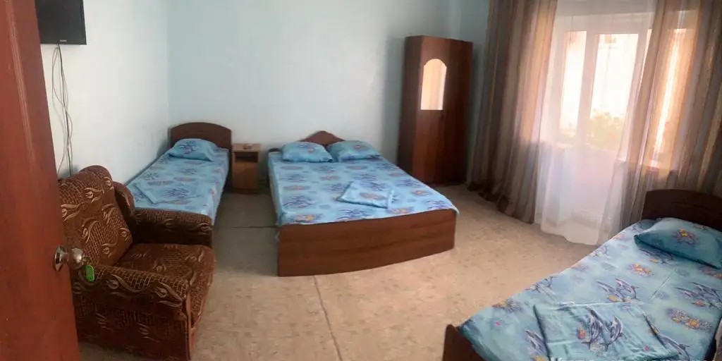 Мини-гостиница «Афродита» расположена в курортном поселке Витязево в микрорайоне «Лазурный». До моря минут 12 по тенистой пешеходной аллее в районе «Жемчужины России» с детским парком и питьевым бюветом. Территория большая и благоустроенная. Во дворе имеется открытый бассейн с местом для купания детей. Для маленьких гостей предусмотрена детская площадка. Также здесь имеется зона барбекю с мангалом, а в прохладной тени можно посидеть за столиками и вкусно покушать. Для гостей есть 3 специально оборудованные кухни для самостоятельного приготовления пищи. Вся инфраструктура в шаговой доступности: продуктовые магазины, супермаркет «Пятерочка»," Магнит" и аптека, много столовых, небольшой рынок. До Паралии 15−20 минут пешком.
