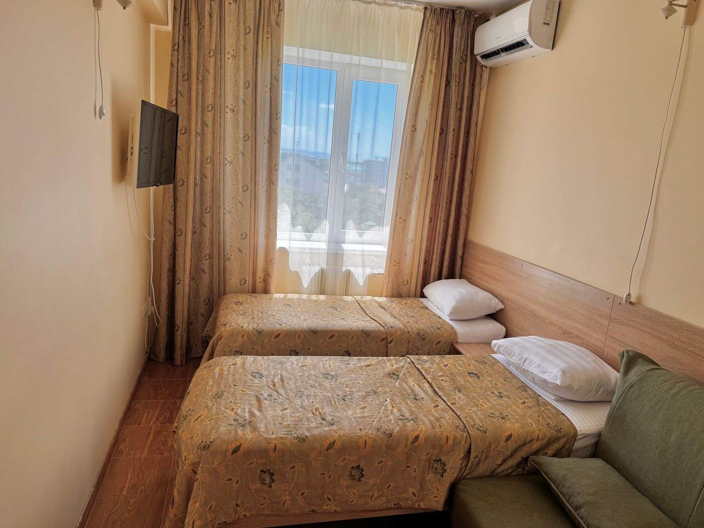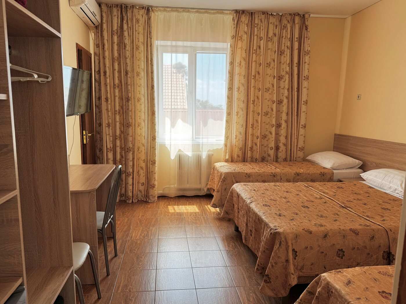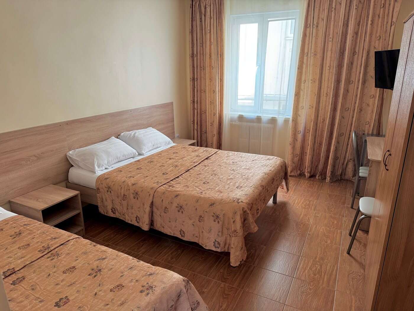 Вы можете выбрать наиболее подходящий вам тип комнаты уже сейчас. А их у нас 7: двух-, трёх-, четырёхместные комнаты с балконами и без. Для больших семей или компаний можем предложить 2-х комнатную. В комнатах установлены кондиционеры, холодильники, телевизоры — всё для вашего удобства.